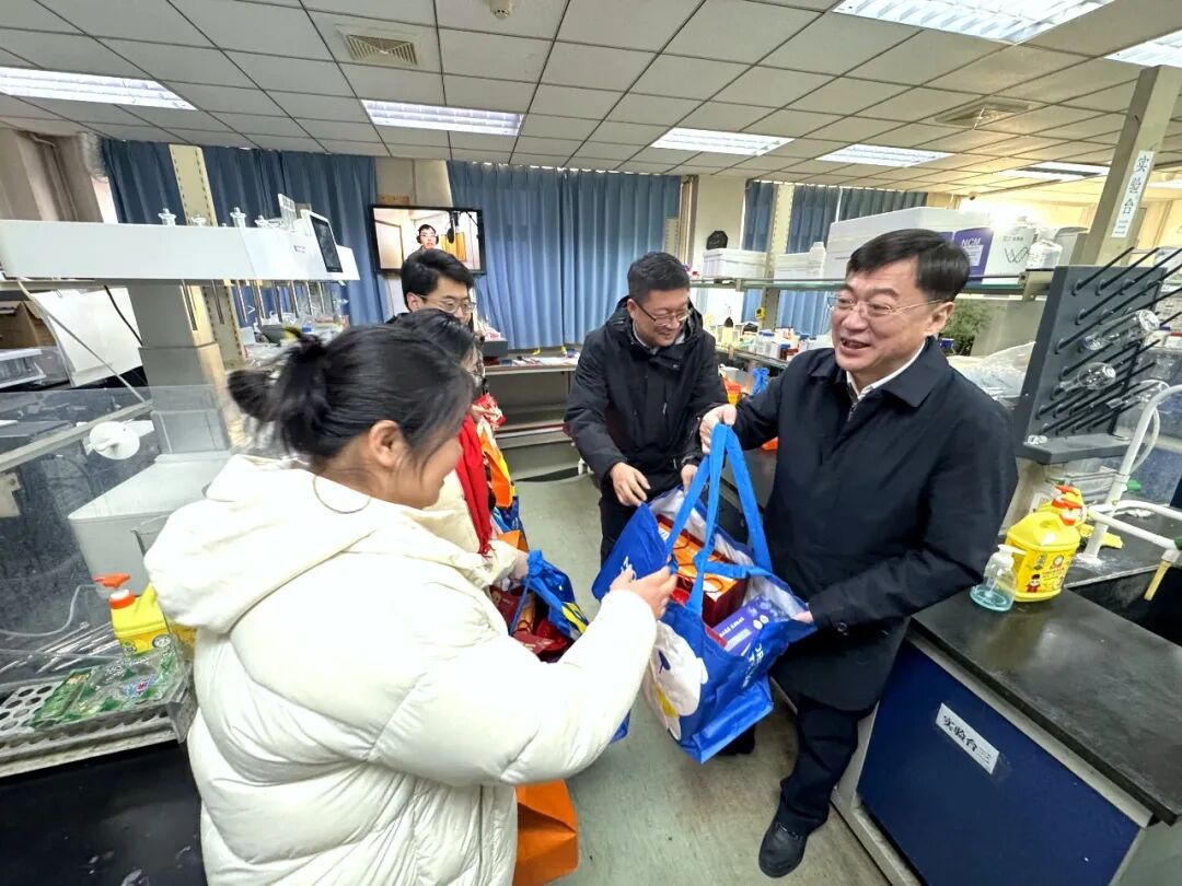 龙腾辞旧岁,马踏迎新春。2月16日,农历除夕,校党委书记关雪峰,学校领导班子成员李可强、路金才、卢文春深入两校区看望慰问坚守在校园服务保障一线的教职员工和留校学生,代表学校向大家送上节日的问候和新春的祝福,同步检查校园安全运行情况。